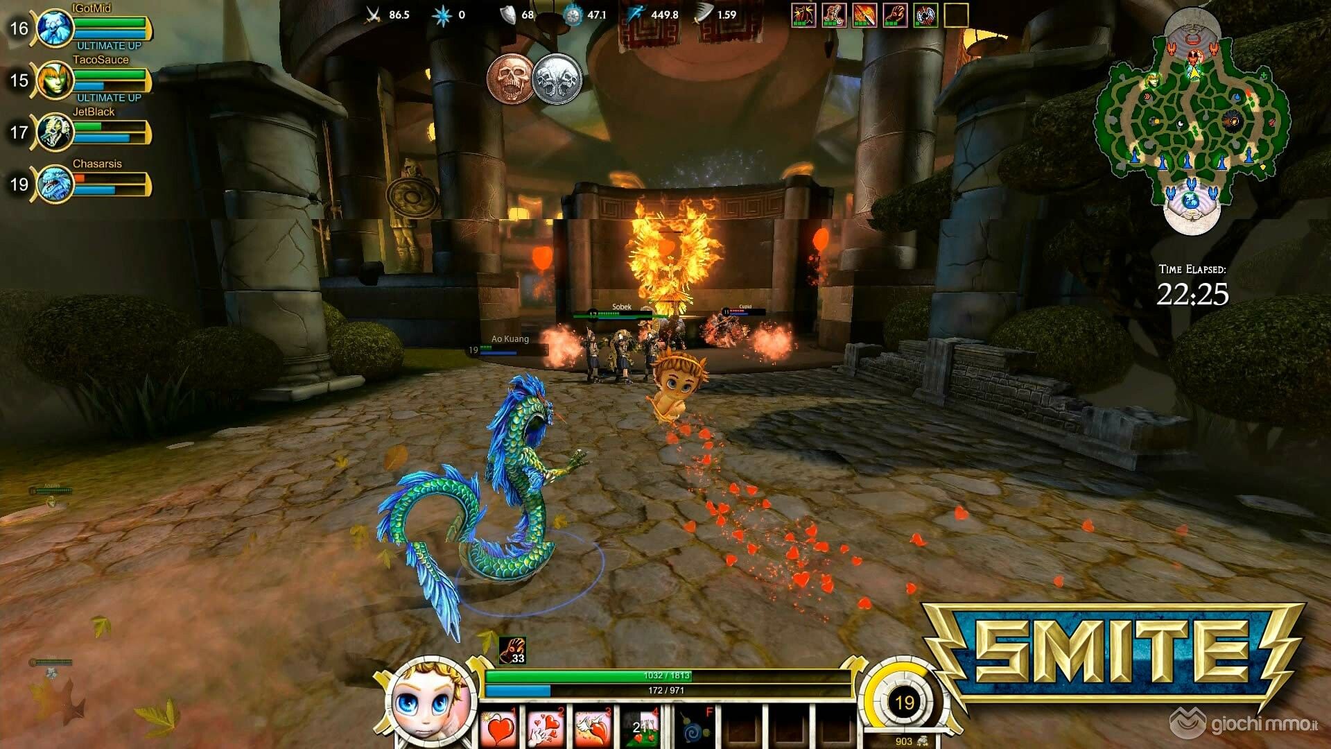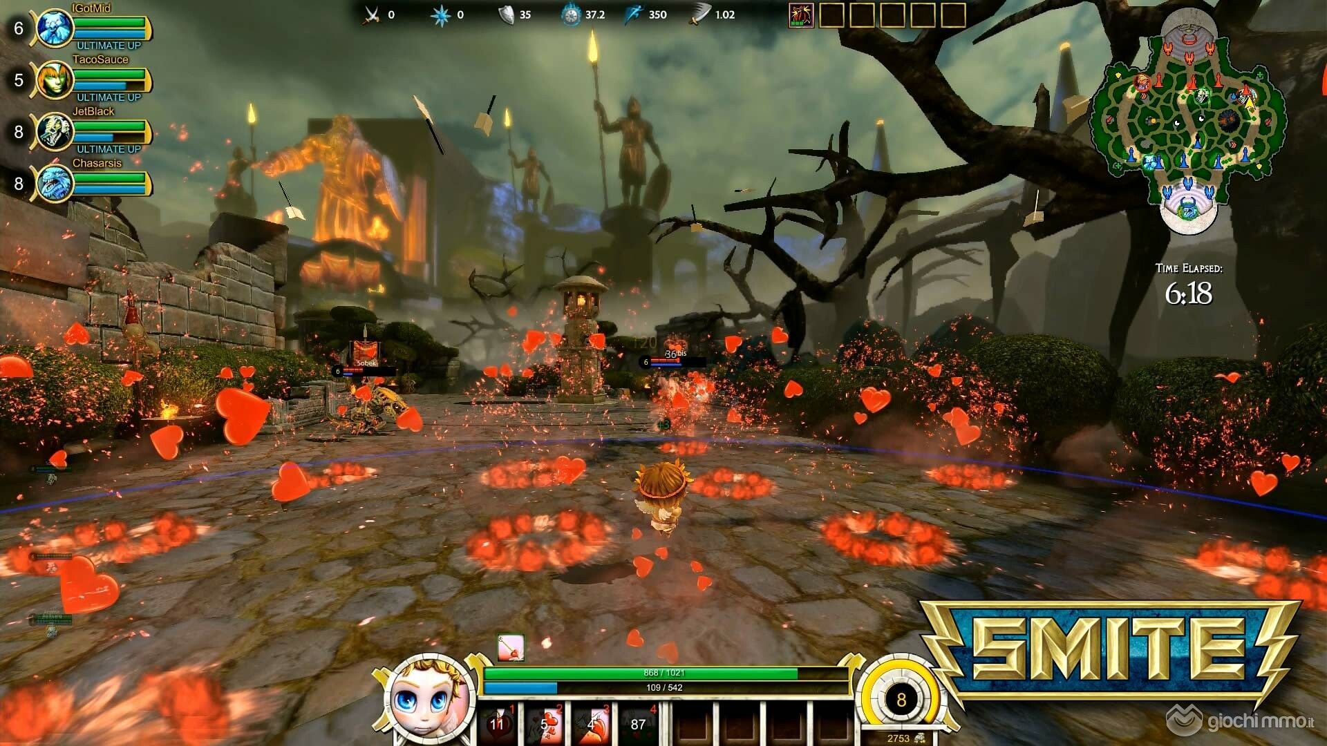 Per chi non l'avesse mai provato Smite è un gioco davvero rivoluzionario nel campo dei MOBA (Multiplayer Online Battle Arena): l'impianto è sempre lo stesso dei MOBA (squadre che si riempiono di mazzata in un 5 vs 5, su una mappa che prevede in genere 3 sentieri diversi da percorrere, fino alla distruzione della base avversaria), mentre quel che cambia è il punto di vista (in terza persona stile MMORPG , e non dall'alto) e l'ambientazione in cui protagonisti sono gli dei di ogni cultura. Ultimo arrivato tra i vari dei è Cupido, che certo non rifulge per muscolatura e capacità di instillare il terrore nei nemici, pur disponendo di abilità (tutte cuoricini e amore) che sottovalutare sarebbe quantomeno incauto. Eccovi il video direttamente da Colonia!